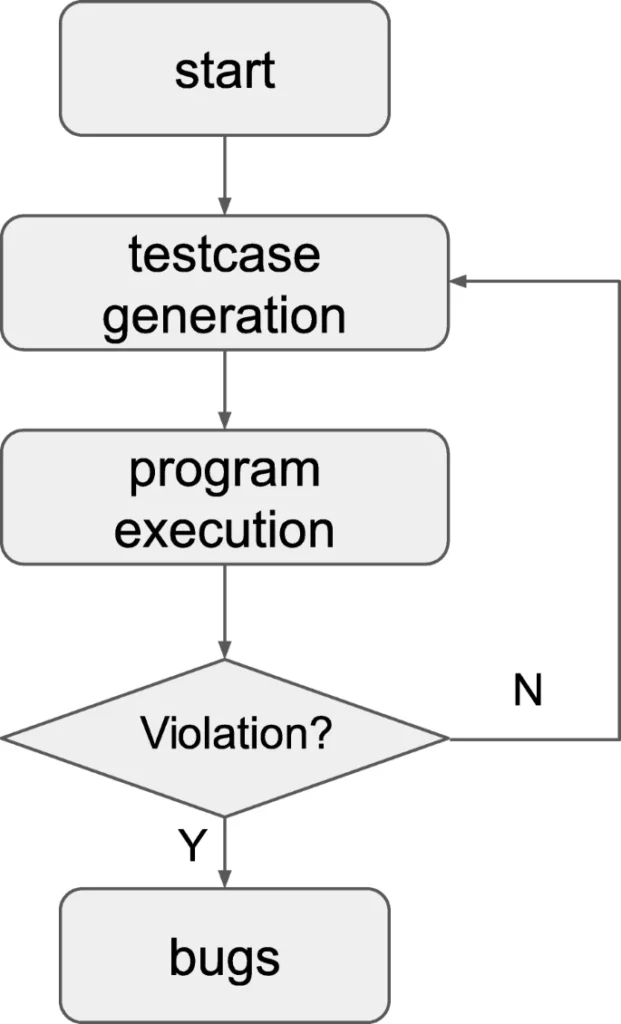 شکل 1 فرآیندهای اصلی آزمون‌های فازینگ سنتی را نشان میدهد. فرآیند کار شامل چهار مرحله اصلی است: مرحله تولید کیس‌های تست، مرحله اجرای کیس‌های تست، نظارت بر وضعیت اجرایی برنامه و تحلیل استثناها.