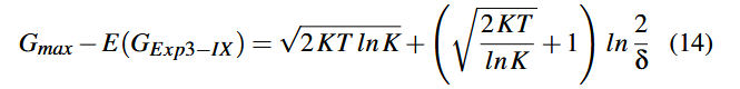 الگوریتم ۳، الگوریتم Exp3-IX را نشان میدهد. Exp3-IX وزن هر یک از K اهرم (arm) را نگهداری میکند که از این وزنها برای تعیین متناسب احتمال انتخاب هر اهرم استفاده میشود. هنگامی که یک اهرم انتخاب میشود، الگوریتم پاداش تخمینی را بر اساس احتمال انتخاب آن اهرم و یک عامل اکتشاف ضمنی γ محاسبه میکند. وزن هر اهرم سپس بر پایهٔ این پاداش تخمینی، بهصورت نمایی تنظیم میشود؛ این تنظیم توسط ثابت نرخ رشد η کنترل میگردد. با داشتن تعداد اهرمها K، تعداد کل دفعات اجرا T، و پارامترهای اکتشاف/رشد، Exp3-IX کران regret زیر را تضمین میکند: